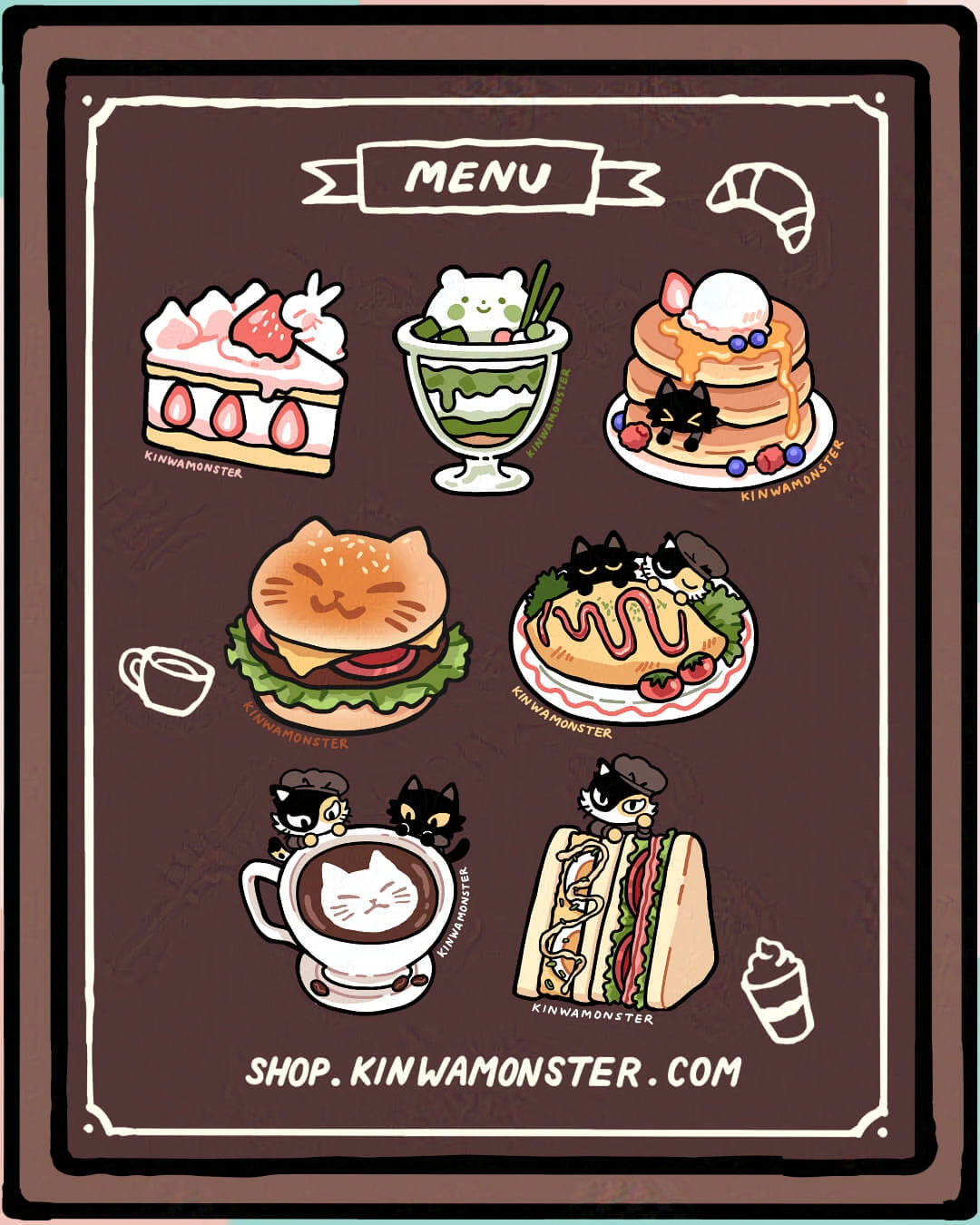 Come have a bite to eat at Bao and Hei's bakery cafe! These cute vinyl stickers features some delicious food and drink items from the menu! Approx. 3 inch