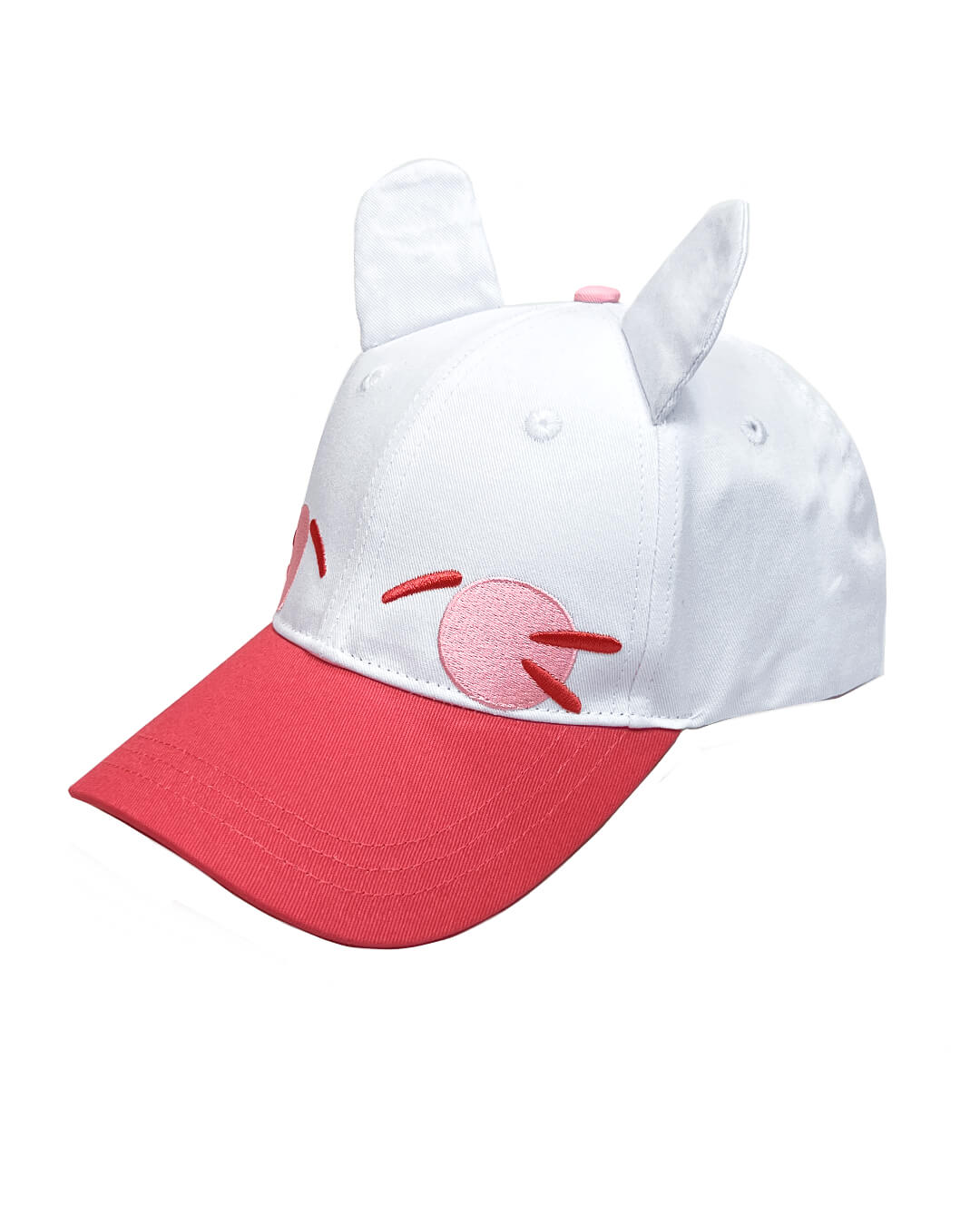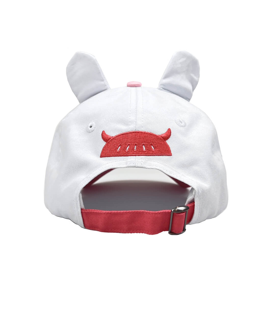 100% cotton embroidered cap with ears. One size only with adjustable band in the back!