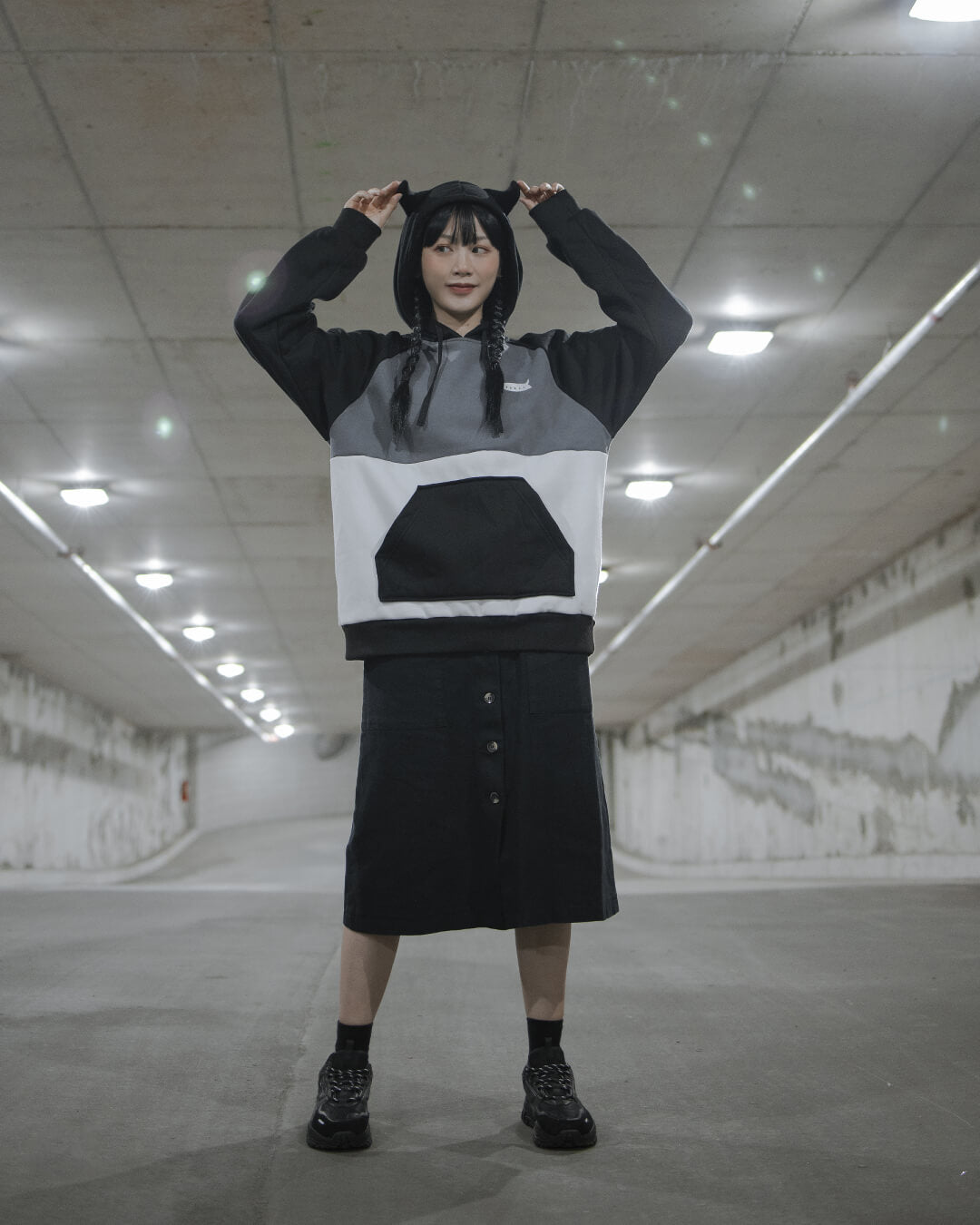 Original Kinwamonster Creature LOGO 50/50 Cotton Polyester Colorblock Hoodie Sweatshirt with embroidered and silkscreened details! Interior fleece lining!