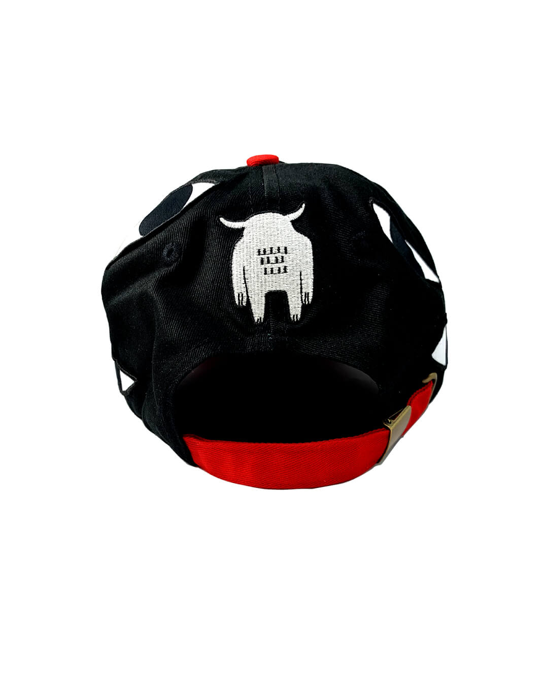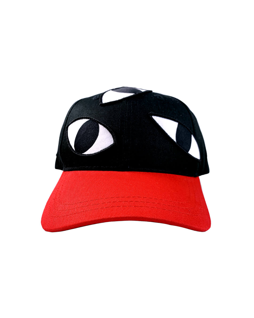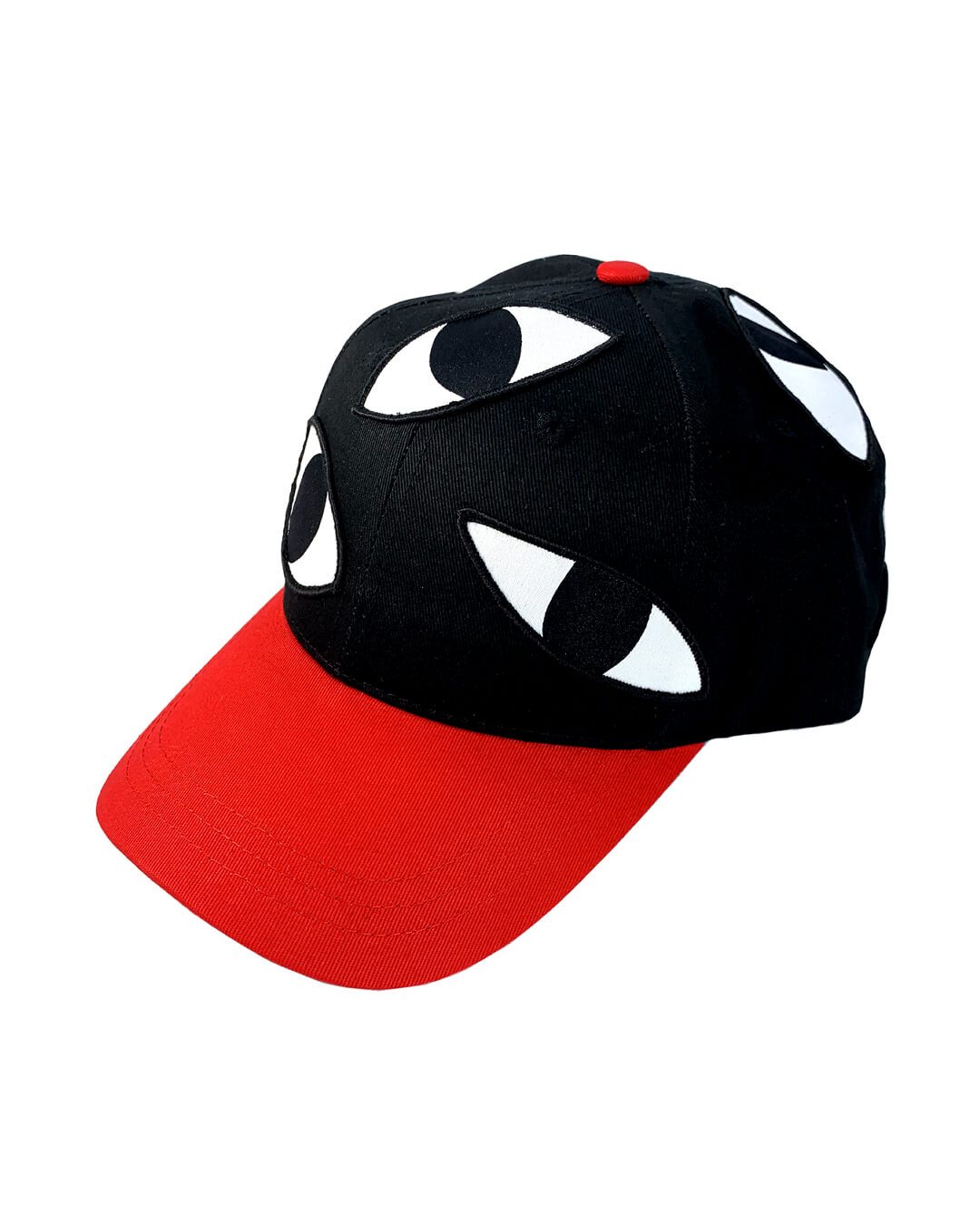 Original EYES baseball cap designed by KINWA. Embroidered patches of eyes all over the cap and embroidered KINWAMONSTER logo on back. 100% cotton. One size only with adjustable band!