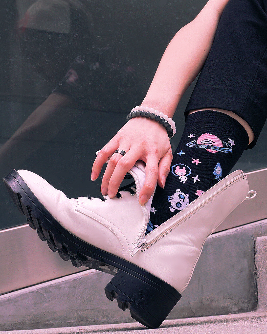 Machine and dryer friendly. Do not dry clean. Do not iron directly on the image. Each sock comes with apparel care on the packaging.