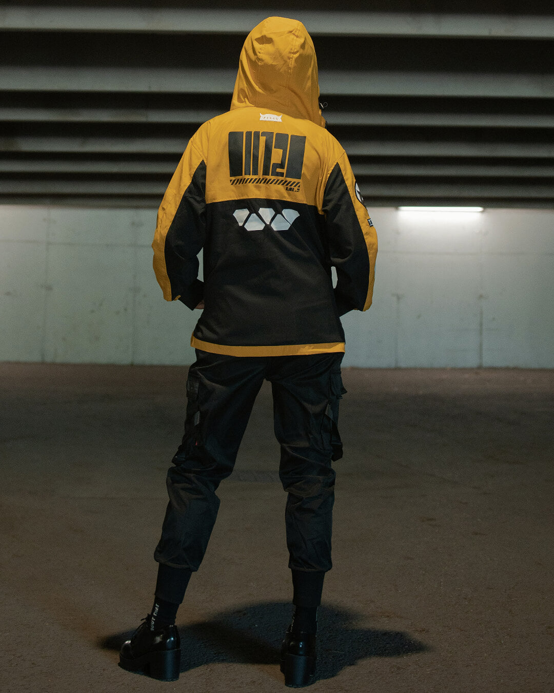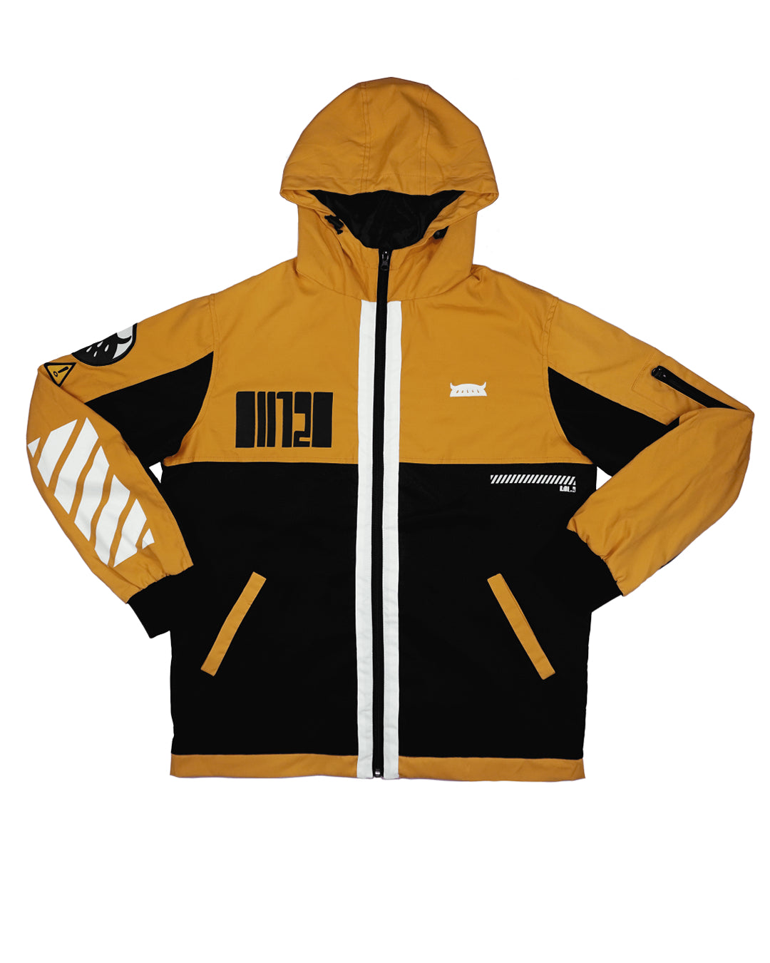 Introducing the original KINWAMONSTER VOL. 3 LOGO design by KINWA, silkscreened on a yellow 100% polyester windbreaker jacket.