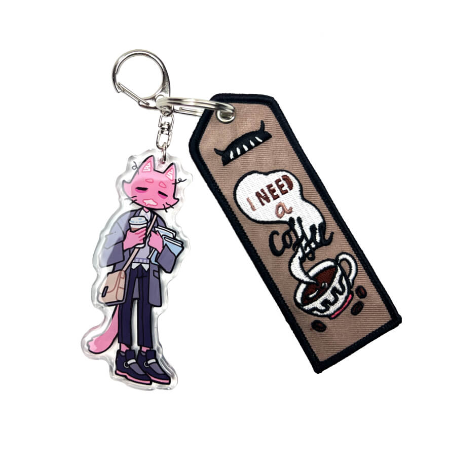 Approx. 3 inch (7.6 cm) clear acrylic resin keychain. Comes with matching embroidery strap.