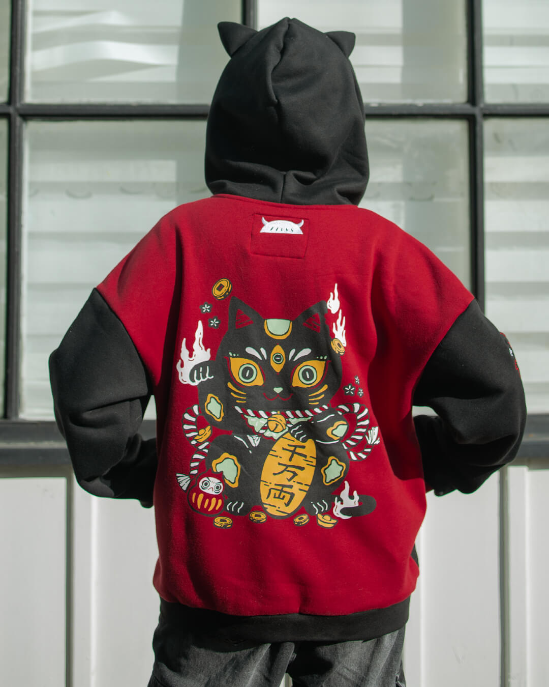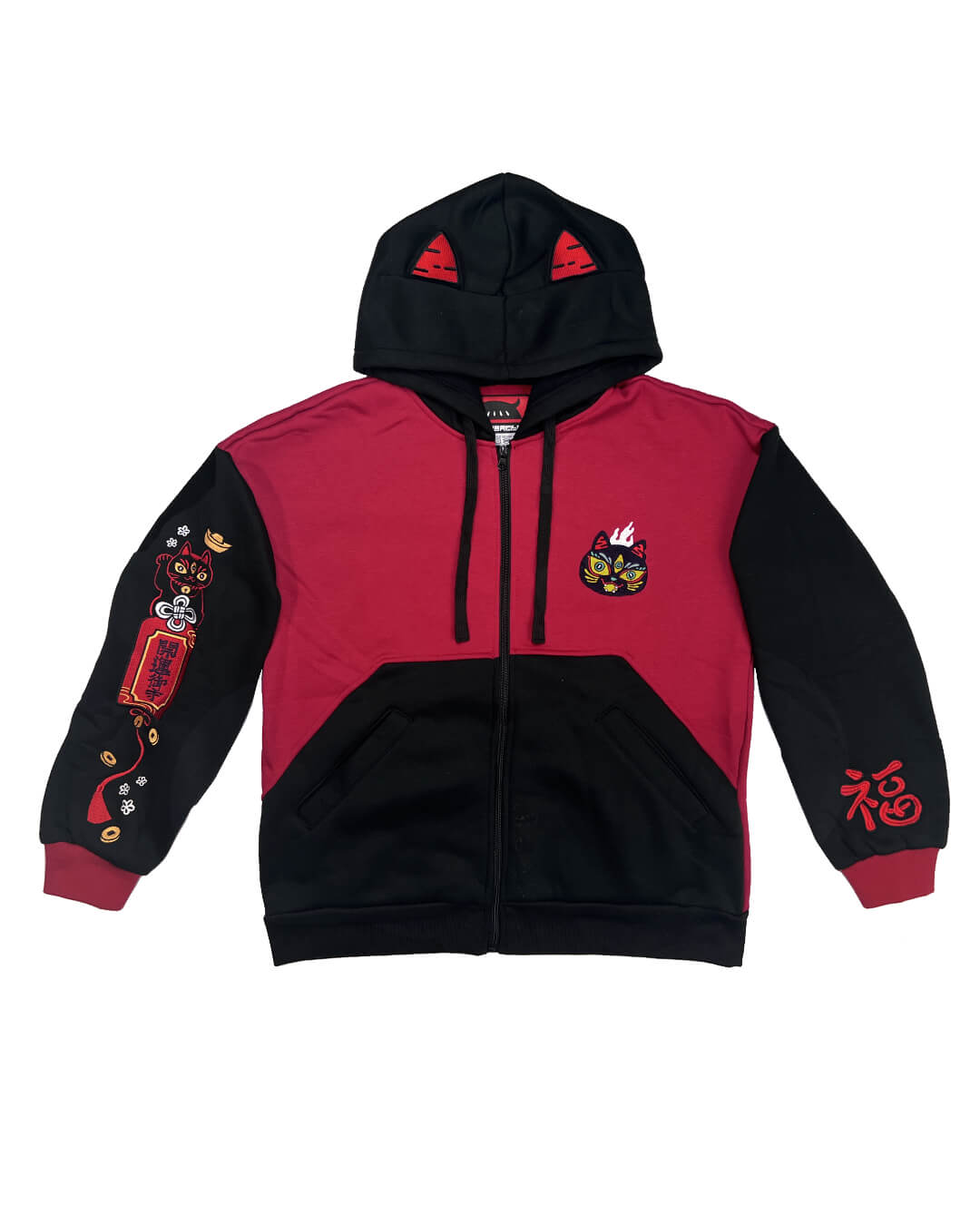 Get lucky with the Original LUCKY CAT 50/50 Cotton Polyester Colorblock Hoodie Jacket!