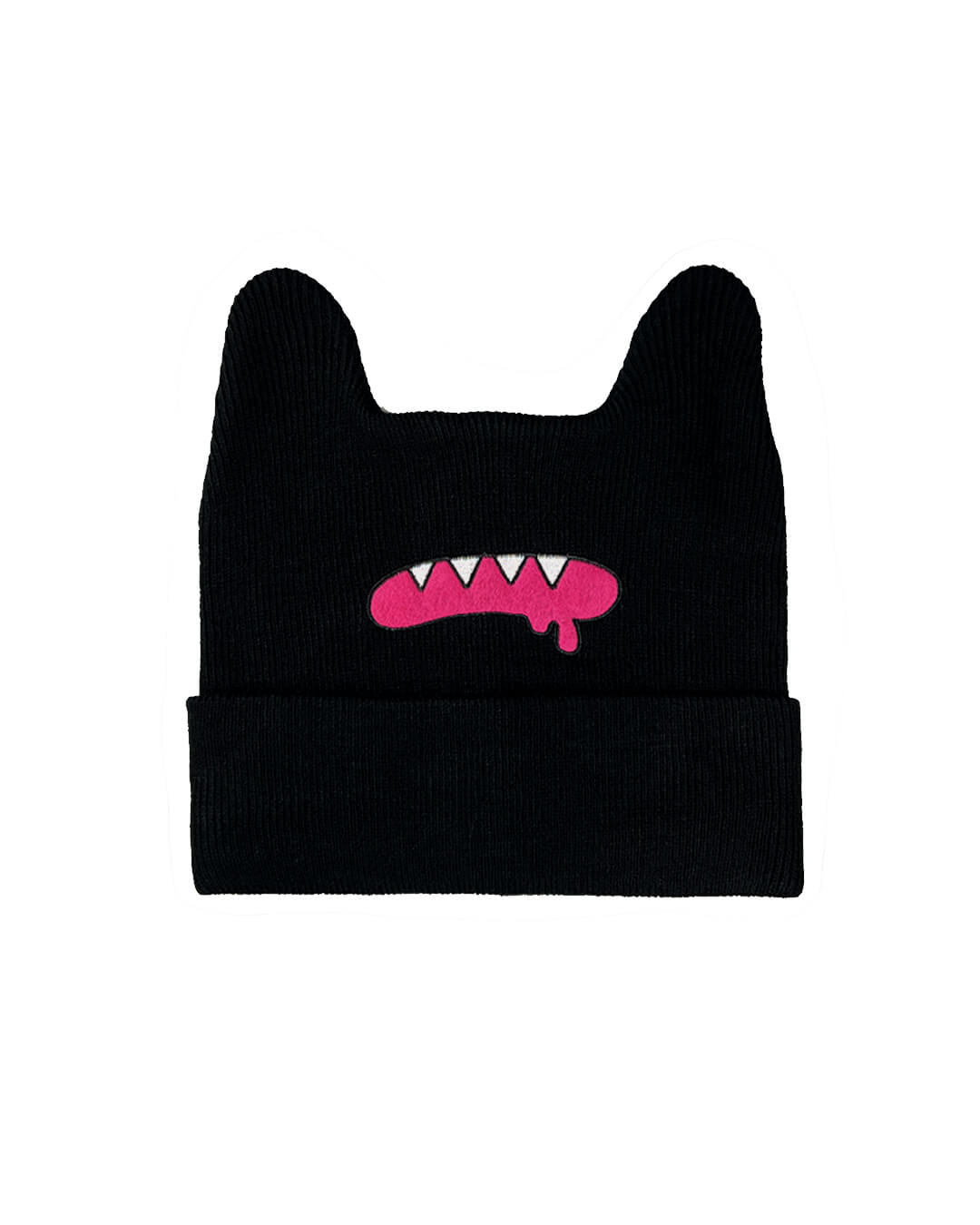 Original Monster Bunny version 2.0 designed by KINWA. Embroidered mouth patch on a black wool beanie. Keep your head warm with this frighteningly cute monster bunny beanie! One size fits most!