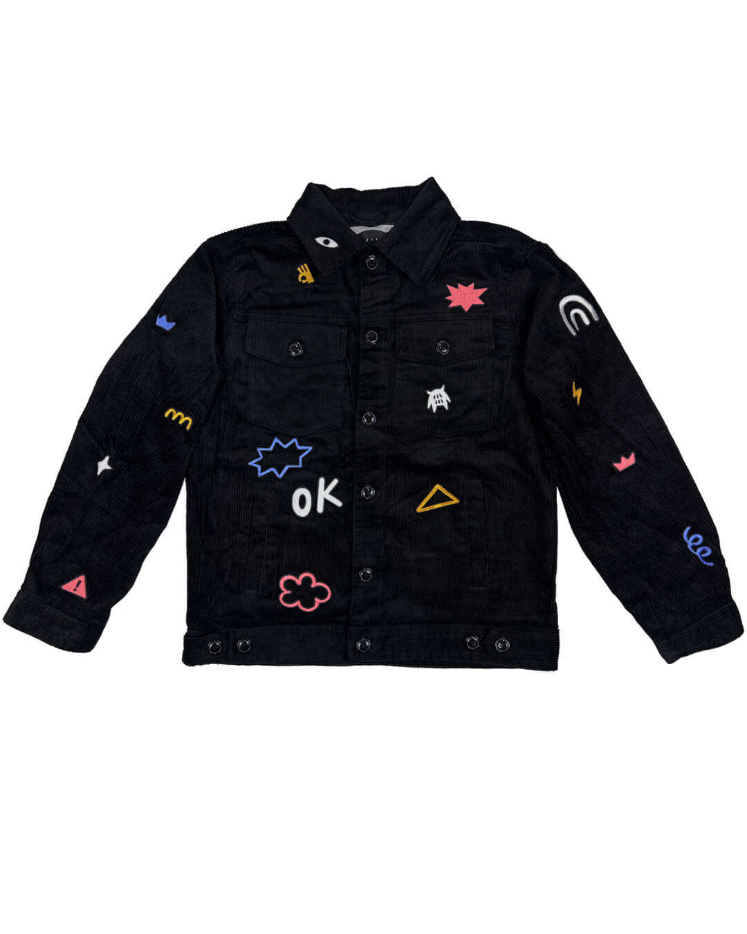 Introducing the SHAPES 100% cotton Corduroy Black Jacket! This delightfully embroidered jacket will make you feel stylish and stand out in any crowd!