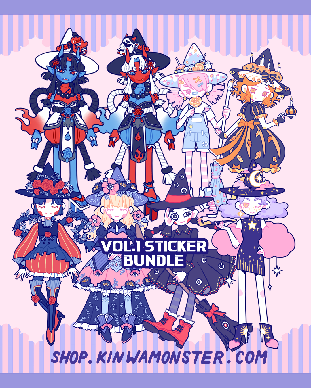 Each sticker bundle contains 8 witches from their respective Gacha series! Comes with matching backing card!