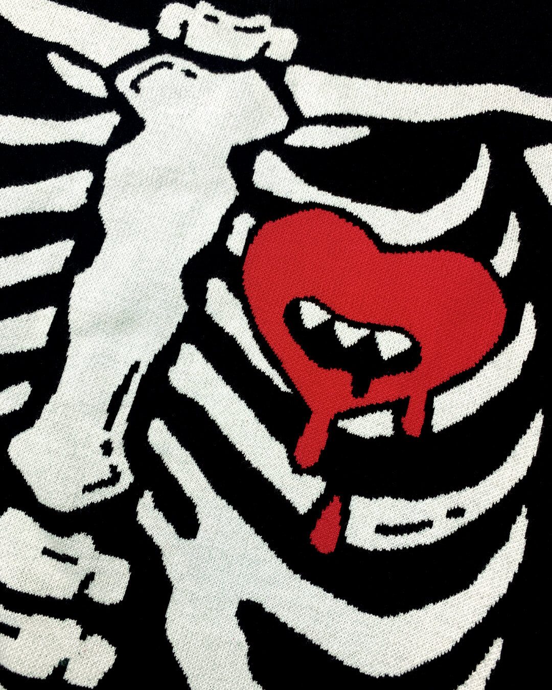 Let's get spooky with the Skeleton Knit Sweater! Super lightweight and soft but will keep you warm during a crisp cool autumn! Pair it with the Monster Crossbody Bag!