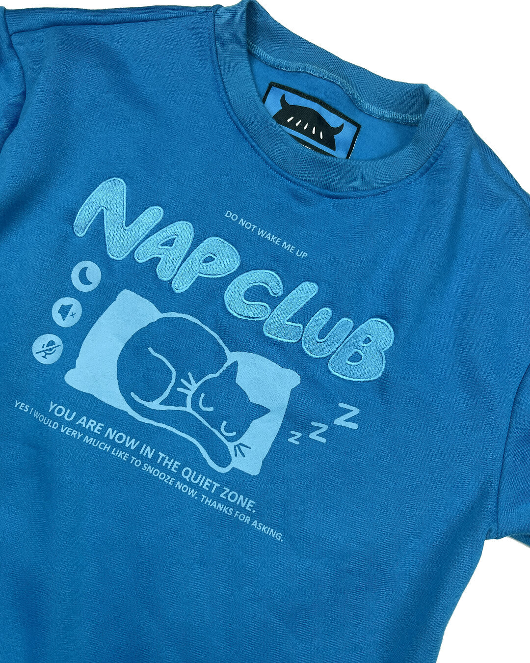 Be an official member of Nap Club with this embroidered 50/50 cotton and polyester blue sweatshirt! Interior Fleece lining to keep you nice and cozy while you drift off to sleep!